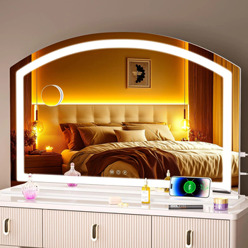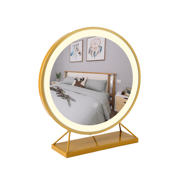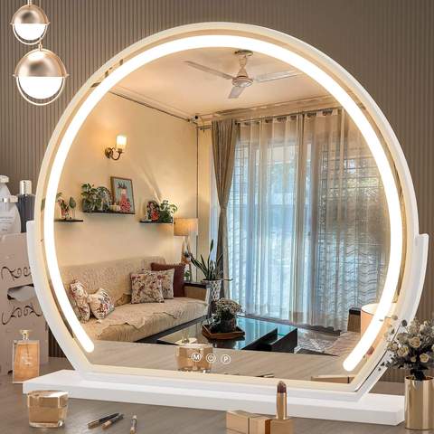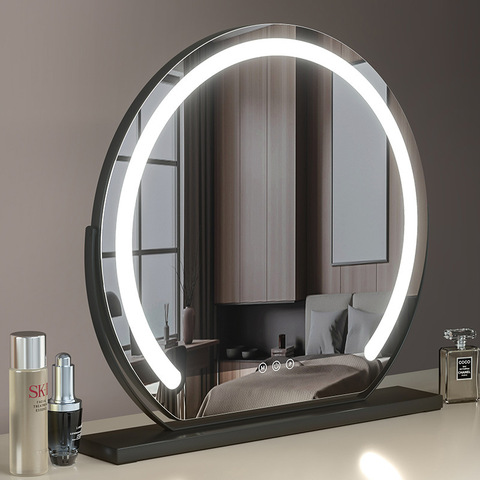 Grote Maat Stabiele Basis Smart Touch Control 360 ° Rotatie Ronde 3 Kleuren Make-Up Spiegel Op Het Bureau